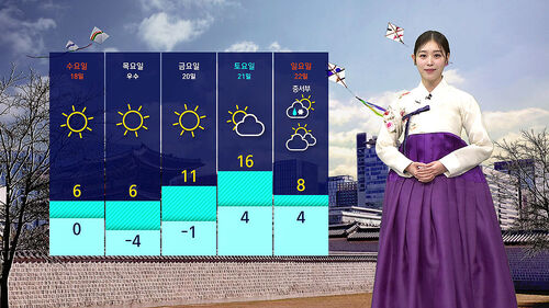 지역별 낮 기온 살펴보시면 전주의 낮 최고 기온 8도, 부산은 13도까지 오르겠고요.