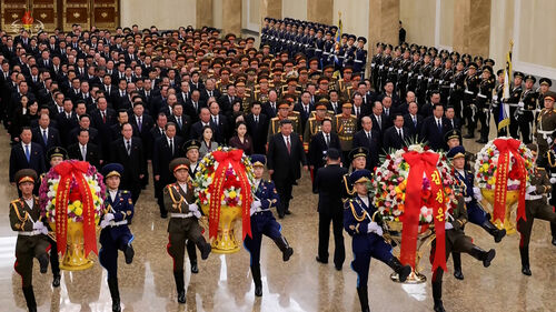 통신은 또 만수대언덕의 김일성·김정일 동상에 당, 정권, 무력기관, 사회단체, 성, 중앙기관, 조선인민군, 사회안전군 부대, 공장, 대학 등의 명의로 된 꽃바구니가 진정됐다고 전했습니다.