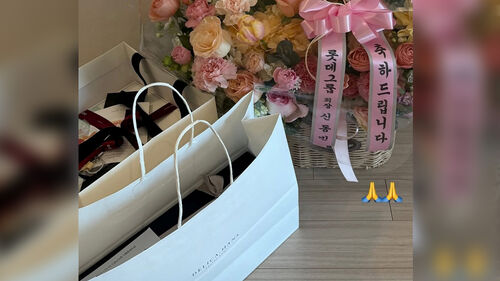 최가온은 오늘(17일) 자신의 소셜 미디어를 통해 신동빈 회장으로부터 받은 화환과 선물 사진을 공개했습니다.