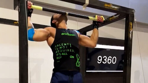 24시간 동안 턱걸이를 무려 1만 2천345회나 성공해 이 분야 세계 신기록을 세웠습니다.