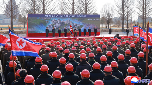 ▲ 김정은, 화성지구 5단계 건설 착공식 참석