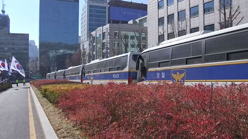 경찰은 오늘 16개 기동대 1천여 명을 투입하고, 경찰 버스 48대를 동원해 법원 주변에 차벽을 설치했습니다.
