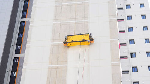 현대엔지니어링이 도장 전문업체와 공동 개발한 기술로 무인·원격제어 방식으로 기존에 작업자가 건물 외벽에 매달려하던 작업을 대체할 수 있습니다.