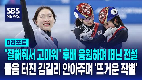 [최민정/쇼트트랙 국가대표 : (김)길리 (선수)도 여자 계주 '마지막 주자' 하느라 부담도 많았을 거고 첫 올림픽이라 부담도 많이 됐을 텐데 그럼에도 불구하고 너무 잘해준 것 같아서 (감사하고), 제가 도와준 건 없는데 자꾸 '고맙다' 그래서 민망한데, 선배로서도 그렇고 너무 뿌듯하고 대견하고 앞으로도 더 잘해줄 수 있는 선수라고 생각이 들어서, 이제는 (김)길리 선수한테 많은 응원 부탁드리겠습니다.]
