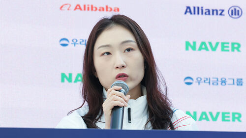 ▲ 쇼트트랙 최민정이 현지 시간 21일 이탈리아 밀라노 코리아하우스에서 열린 기자회견에서 발언하고 있다.