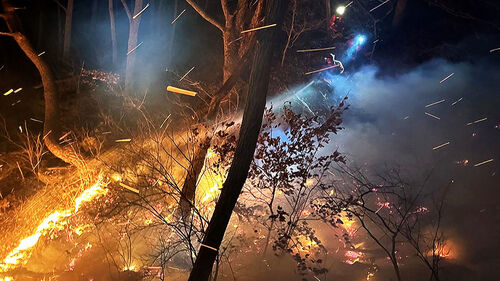산림 당국은 현장에 초속 5m의 강풍이 부는 가운데 급경사 지형으로 인해 야간 진화에 어려움을 겪었다고 밝혔습니다.