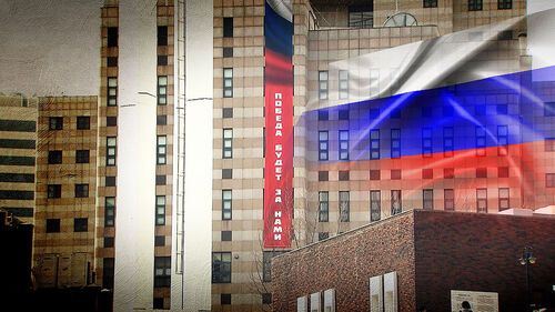 이런 가운데 주한 러시아 대사관이 서울 중구에 있는 대사관 건물 외벽에 러시아어로 '승리는 우리 것'이라고 쓴 대형 현수막을 내걸어 논란입니다.