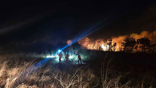 ▲ 22일 오후 7시 22분께 강원 고성군 토성면 인흥리에서 산불이 나 불길이 번지고 있다.