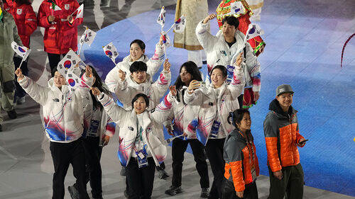 한국은 이번 대회를 마지막으로 올림픽 은퇴를 선언한 쇼트트랙 최민정(성남시청)과 은메달 2개를 획득한 쇼트트랙 황대헌(강원도청)이 기수를 맡았습니다.