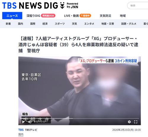 23일 일본 TBS TV 등 현지 매체에 따르면 7인조 걸그룹 XG의 총괄 프로듀서 사이먼 준호 사카이(39·한국명 박준호)가 이날 새벽 일본 아이치현 나고야의 한 호텔 객실에서 코카인 및 대마초 소지 혐의로 현행범 체포됐다. 함께 있던 에이벡스 엔터테인먼트 직원 2명과 관계자 1명 등 총 4명도 같은 혐의로 체포된 것으로 전해졌다.