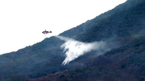 산등성이에서 계속해서 희뿌연 연기가 뿜어져 나오고, 진화 헬기들은 쉴 새 없이 오가며 물을 뿌립니다.