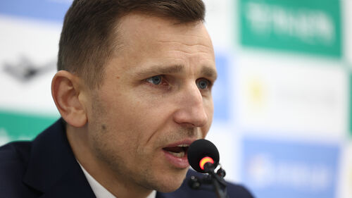 ▲ 농구 대표팀 니콜라이스 마줄스 감독이 지난 4일 서울 올림픽회관에서 남자 농구 국가대표 명단 발표를 하고 있다