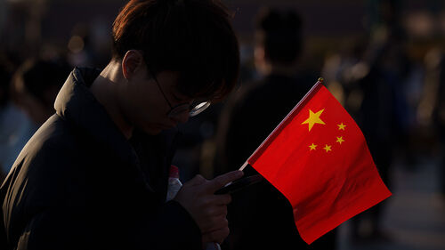 ▲ 중국 베이징에서 한 남성이 중국 국기를 들고 걸어가는 모습