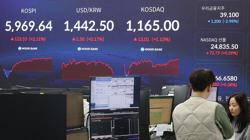 ▲ 24일 오후 서울 중구 우리은행 본점 딜링룸 현황판에 코스피, 원/달러 환율, 코스닥 지수가 표시돼 있다.