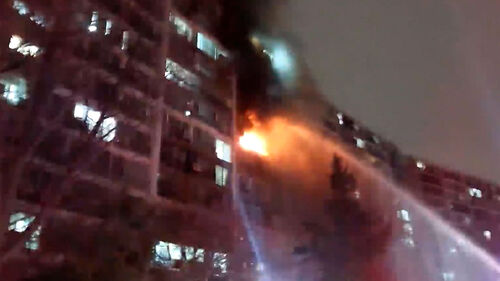 시뻘건 불길과 함께 아파트 창 밖으로 연기가 쉴 새 없이 뿜어져 나옵니다.