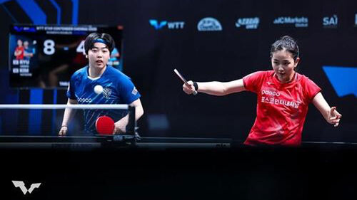 ▲ WTT 대회에 나선 김나영(오른쪽)과 유한나의 경기 장면