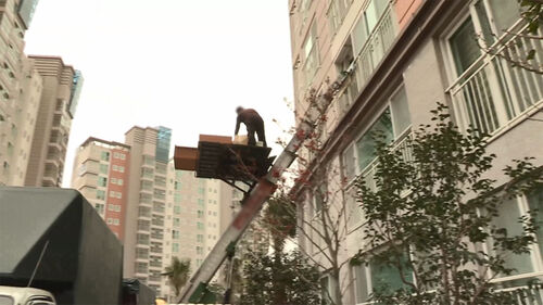 인명 피해는 발생하지 않았지만, 사다리차가 기울어지는 과정에서 인근 전선이 끊어지며 일부 세대의 전기 공급이 끊긴 것으로 파악됐습니다.