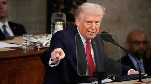 ▲ 도널드 트럼프 미국 대통령이 24일(현지시간) 워싱턴 DC 미국 국회의사당 하원 회의장에서 2기 첫 국정연설을 하고 있다.