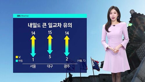 내일 아침 기온은 춘천이 영하 4도로 출발하겠고 낮 기온은 춘천 14도, 대전과 대구 15도까지 오르겠습니다.