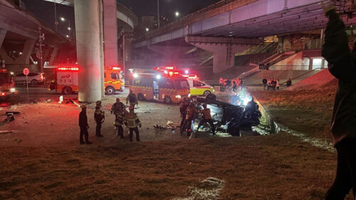 어제(25일) 오후 8시 40분쯤 서울 반포대교를 달리던 검은색 포르쉐 차량이 다리 밑 한강 둔치로 추락하는 사고가 발생했습니다.