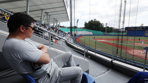 가네코 코치는 오늘(26일) 오키나와현 가데나의 가데나 구장에서 열린 한국 야구대표팀과 삼성 라이온즈의 연습경기를 보기 위해 구장을 찾았습니다.