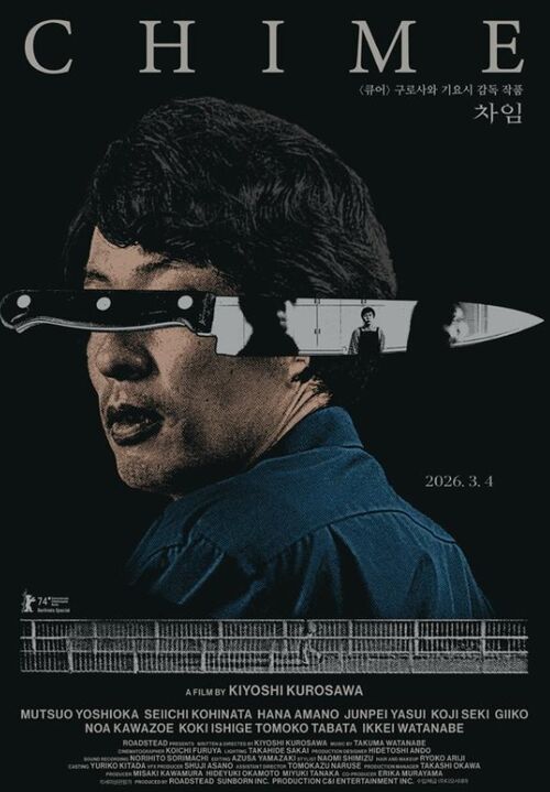 '차임'은 요리 교실 강사 마츠오카가 한 수강생으로부터 종소리가 들린다는 기이한 말을 듣고 기묘한 공포감에 휩싸이며 벌어지는 이야기. 구로사와 기요시 감독은 현대인의 불안과 고독을 특유의 서늘한 시선으로 포착, 자극적인 장치 없이 미장센과 음향만으로 더욱 날카롭고 정교해진 서스펜스 호러의 세계로 관객들을 안내할 예정이다.