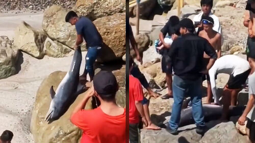 에콰도르에서 해변에 떠밀려 온 돌고래를 상대로 끔찍한 학대 사건이 벌어져 논란을 사고 있습니다.