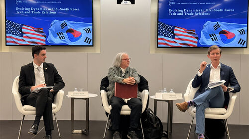 ▲ 26일(현지시간) 미국 워싱턴DC에서 아시아정책연구소(NBR)가 주최한 '한미 기술·무역 관계의 변화 양상' 주제 세미나에서 나이절 코리 연구원이 발언하고 있다.