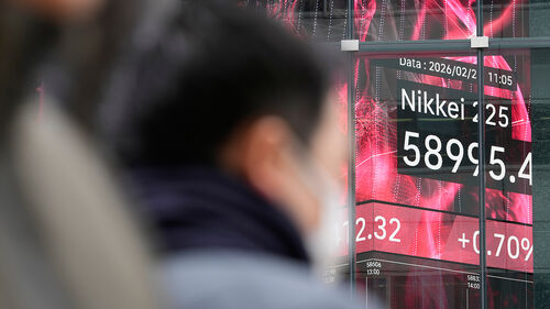▲ 지난 26일 도쿄에서 사람들이 일본 증시 대표 주가지수인 닛케이지수 현황판 앞을 지나가고 있다.