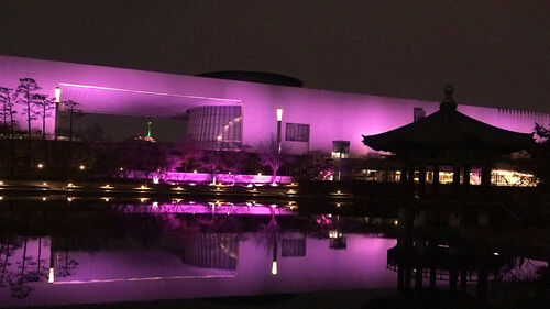 국립중앙박물관이 블랙핑크의 상징색으로 물들었습니다.