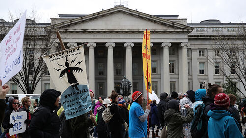 ▲ 지난 2017년 워싱턴 DC에서 다코타 액세스 파이프라인 반대 시위 중 행진하는 시위자들