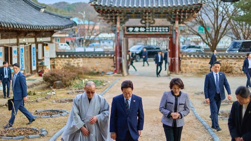 청와대는 "이 대통령과 김혜경 여사가 어제 전북대 '피지컬 AI 실증 랩'을 방문한 뒤 송광사를 찾았으며, 주지스님과 차담의 시간을 가졌다"고 설명했습니다.