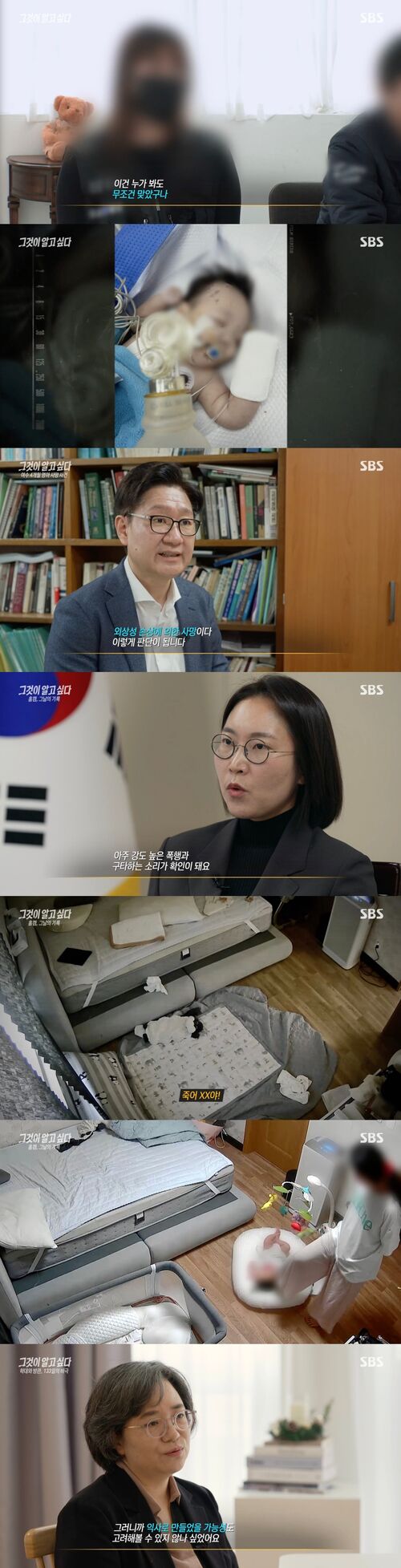 전문가는 "가슴 복부 머리 손상이 다 독립적으로 각각 다른 기전의 강력한 힘이 작용한 손상들이 확인된다. 그런 둔력이 작용하면 잘못될 수 있다는 생각을 한다. 이는 절대 단순 사고 방치가 아니고 고의적 사고라 판단된다"라고 분석했다.