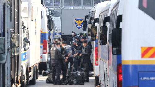 ▲ 헌재 인근 훈련 준비하는 경찰 기동대