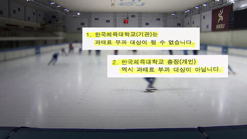 국내에서 유일한 체육 특성화 국립대학인 한국체육대학교가 법을 어기고, 허위 공문서까지 작성해 구청에서 과태료 처분을 받았습니다. 하지만 한체대가 '과태료를 낼 수 없다'는 답변을 내놓은 것으로 저희 취재 결과 확인됐습니다.