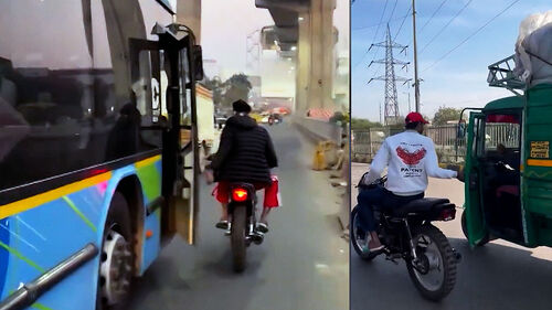 한 남성이 오토바이를 타고 주행 중인 버스 옆에 바짝 붙더니 문을 거칠게 열어젖힙니다.