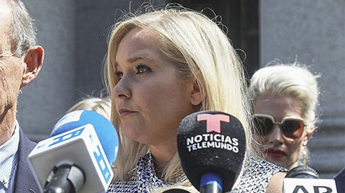 ▲ 엡스타인 성범죄를 고발한 주프레가 2019년 법원 앞에서 기자회견을 하는 모습