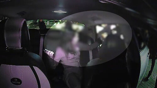 택시에서 하차시키려 하자 여성이 강하게 저항합니다.