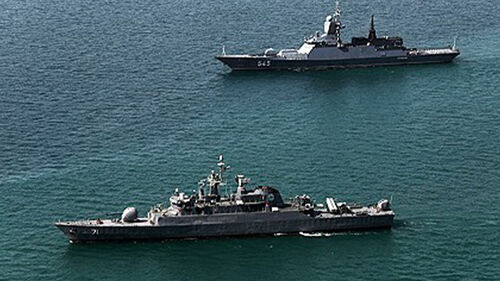 ▲ 지난달 훈련 중인 이란 해군 호위함 (아래쪽)