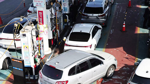 서울 시내의 한 주유소, 기름을 넣으려는 차량들로 빈자리가 없습니다.
