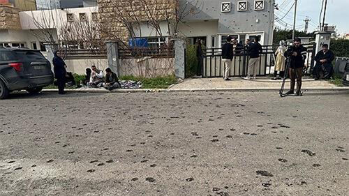 ▲ 2026년 3월 4일 이라크 쿠르디스탄 자치구 이르빌에서 드론 공격을 받은 주택 근처에 사람들이 모여 있다.