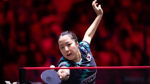 ▲ WTT 싱가포르 스매시에 참여한 신유빈의 경기 장면