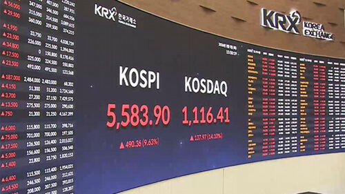 코스피는 9.6%, 490포인트 오른 5천580대에 장을 마쳤습니다.