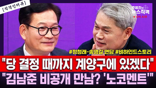 ▷주영진: 그런데 아마 송영길 전 대표도 이 부분이 되게 부담스러우실 것 같아요. 이게 김남준 전 대변인과 송영길 전 대표가 마치 뭔가 겨루고 있는 듯한 모양새로 정치부 기자들에게 보인다거나 신문기사, 방송기사를 통해서 비춰지는 모습은 어떻습니까?