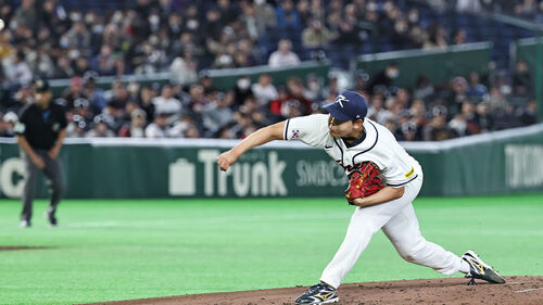 ▲ 5일 일본 도쿄돔에서 열린 2026 WBC 조별리그 C조 1차전 대한민국과 체코의 경기. 한국 선발 투수 소형준이 역투하고 있다.
