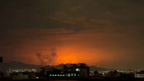 이란 수도 테헤란의 밤하늘이 공습으로 인한 폭발로 번쩍였다 어두워지기를 반복합니다.