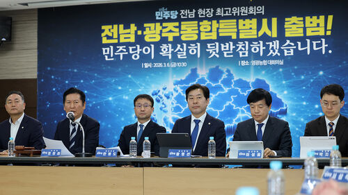 황명선 최고위원은 "6월 3일 통합특별시장을 선출하고 7월 1일 통합특별시가 공식 출범하면 이재명 정부는 과감하고 파격적인 지원을 즉시 가동할 것"이라며 "전남·광주 통합특별시민 여러분은 지방 소멸을 막고 국가 균형 성장을 앞당길 행정통합, 균형 발전, 균형 성장의 특실에 탑승하셨다"고 말했습니다.