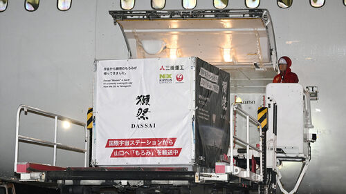 ▲ 일본 주조회사 주도로 국제우주정거장(ISS)에 보내진 누룩과 쌀, 양조 설비로 양조된 청주 발효물이 6일 간사이국제공항을 통해 일본에 들어왔다.