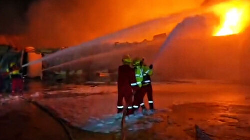이라크 남부 바스라 지역에 위치한 외국 석유 기업 단지로, 미국 석유 기업인 할리버튼과 케이비알 사무실과 창고가 드론 공격을 받고 불타올랐습니다.
