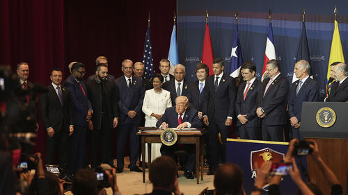미주 지역 범죄 카르텔에 맞서 안보 연합체를 출범시키는 자리에서, 트럼프 대통령은 미국의 군사력을 강조하면서 미국이 참여국의 영토 내에서 군사작전으로 마약 카르텔과의 싸움을 도울 수 있다고 주장했습니다.